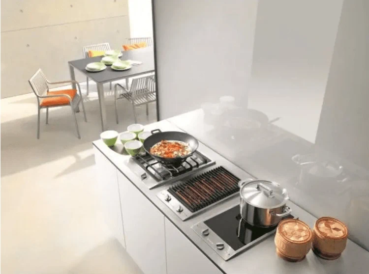 העיצוב כולל משטח נירוסטה מקצועי עם מראה ProLine יוקרתי המשתלב בצורה מושלמת עם שאר מודולי CombiSet.