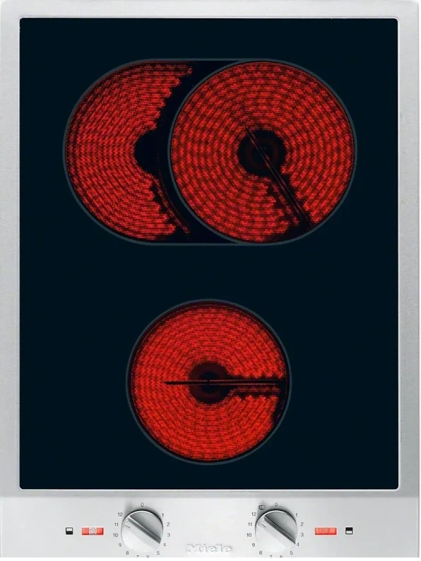הכיריים כוללות 2 אזורי חימום חשמליים קרמיים, כולל אזור בישול/צלייה מתרחב (Bräterzone) המתאים לסירים גדולים ולכלי בישול רחבים.