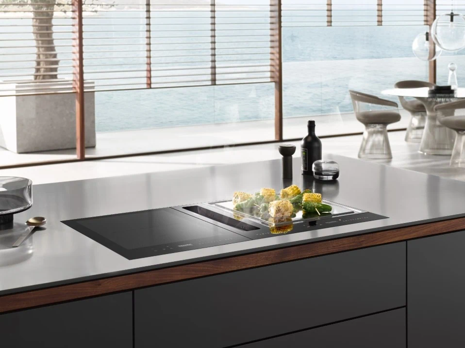קולט אדים אינטגרלי Miele CSDA 7001 FL הוא אלמנט מתקדם מסדרת SmartLine של Miele, המיועד להתקנה ישירות במשטח העבודה לצד כיריים. הקולט שואב את האדים והריחות כלפי מטה (Downdraft), ישירות ממקור הבישול, וכך מונע פיזור שלהם בחלל המטבח.