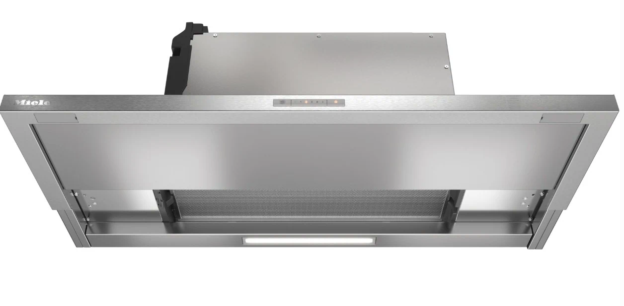 קולט אדים אינטגרלי Miele DAS 2920 60 ס"מ נירוסטה עם שליפה Slimline, תאורת LED ופילטרים לניקוי במדיח. פתרון קומפקטי ואמין למטבח.