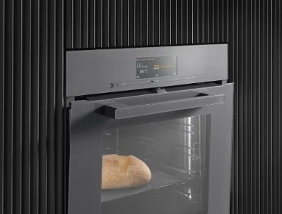 תנור בנוי פירוליטי Miele H7464 BP Black מסדרת ArtLine מציע שילוב של עיצוב שחור חלק, טכנולוגיות אפייה מתקדמות וניקוי עצמי מלא. הדגם כולל תצוגת DirectSensor S עם חיישני מגע, תא אפייה גדול בנפח 76 ליטר ותאורת LED חזקה. מערכת PerfectClean מקלה על ניקוי יומיומי, בעוד הניקוי הפירוליטי שורף שומנים ולכלוך בחום גבוה ללא צורך בחומרי ניקוי.
